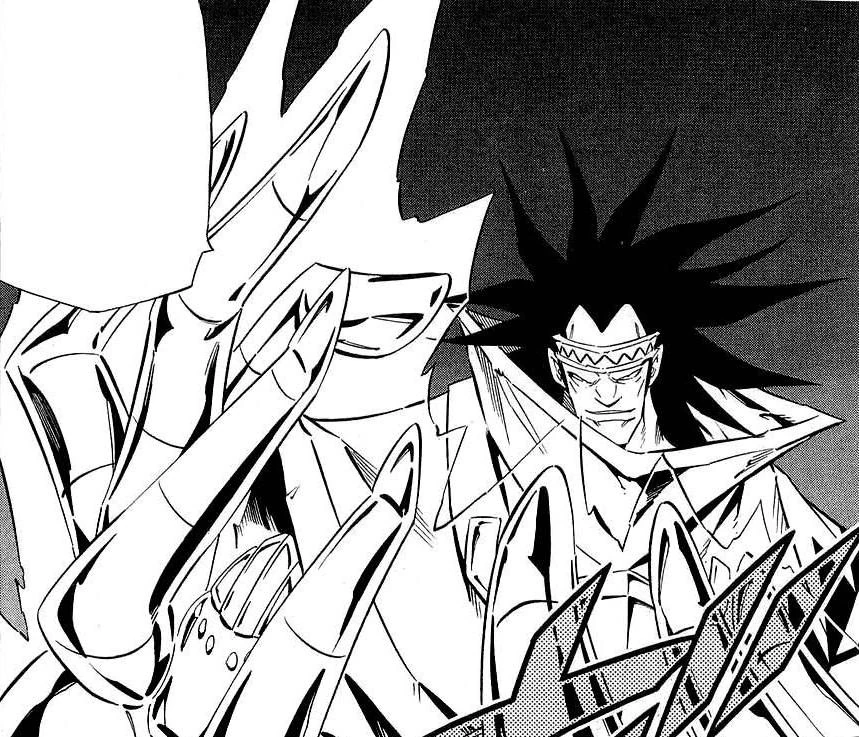 Lyserg se agita y le apunta su arma a Bron, pero es detenido por Yoh diciéndole que se calme y observe que a Bron debió de haberle pasado algo por haber matado sin compasión. Bron dice que debió haber matado a Yoh desde el principio, pero les explica acerca de la Canción Pache y empieza a cantarla. Lyserg invoca a su Arcángel y Morphine y se mueve detrás de Bron para sorprenderlo y atacarlo. Bron esquiva gracias a las redes que había establecido a lo largo de toda la zona, pero luego es quemado por Lyserg.