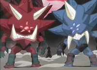 Descripción: Una vez, los poderosos Shikigami sellados dentro de un sello de pergamino por Hao para proteger a los Chō-Senjiryakketsu. Ahora obedecen a Anna Asakura, quien sometió a estos espíritus temibles y los convirtió en sus aliados espirituales. Con su dominio del Chō-Senjiryakketsu, Anna Asakura puede invocar fácilmente a los dos ogros ya que OS Zenki es formidable en el combate cuerpo a cuerpo, usando solo sus puños mientras Goki maneja una poderosa hacha de batalla. También son grandes y muy intimidantes.