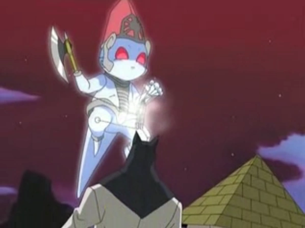 Meanwhile, Yoh and the others have run into a group of shaman called, Team "Niles", who have captured the Zen Ryo to lure out Hao. Zen and Ryo then tell that they only ran away from Hao. As Team "Niles" state that their guardian ghosts are gods, Marco and Lyserg show up with Jeanne. As Yoh refuses to talk with Jeanne, then Team "Niles" pick a fight with the X-Laws to decide who are the real gods. As they take it out of the town, the X-Laws and Team "Niles" prepare to fight. As two members of Team "Niles" use their Over Soul, Lyserg steps forward and breaks their mediums with great ease, shocking Yoh. As Lyserg attacks the leader with the intention to kill him, Yoh runs forward to interrupt him, but he gets stopped by the man from earlier. As Lyserg's pendulum has almost reached its opponent, Morphin stops the attack at the moment when Yoh screams Lyserg's name. As Lyserg is surprised, Marco states that he is disappointed in him. Jeanna then states to the leader of Team "Niles". she has to fulfill justice for him by herself. Then, Jeanne comes out of the iron maiden, partly covered in ivy thorns. As Jeanne has appeared and puts on her battle uniform to fight, everyone who is watching is impressed by her sudden first appearance. As the leader of Team "Niles" attacks her, she captures him in a cage created by her guardian ghost, Shamash. As she captures the other two opponents as well and returns to the Iron Maiden, she orders Shamash to kill them, despite Yoh's screaming in horror.