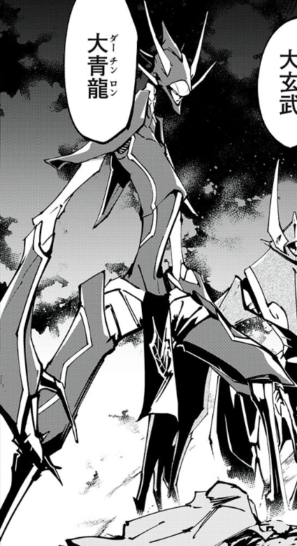 大青龍 Dā Chinron) - An artificial New Trance, the robot's body separates into pieces and, through dimensional transfer, forms a giant mechanical body around Shahon, whose body is tied into the mechanics.[4]