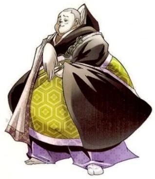 Densen is a very chubby man, who appears to be in his late 60's. He wears a traditional Japanese robes, he has short grey hair.