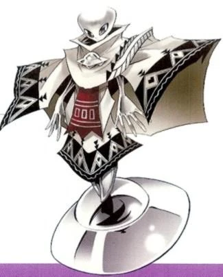Grey Saucer (グレイソーサー Gurei Sōsā) is an extraterrestrial being that crash-landed on Earth and taught advanced technology to the Patch Tribe. After its death, it serves as the Guardian Ghost for successive Patch Officiants.[2][3]