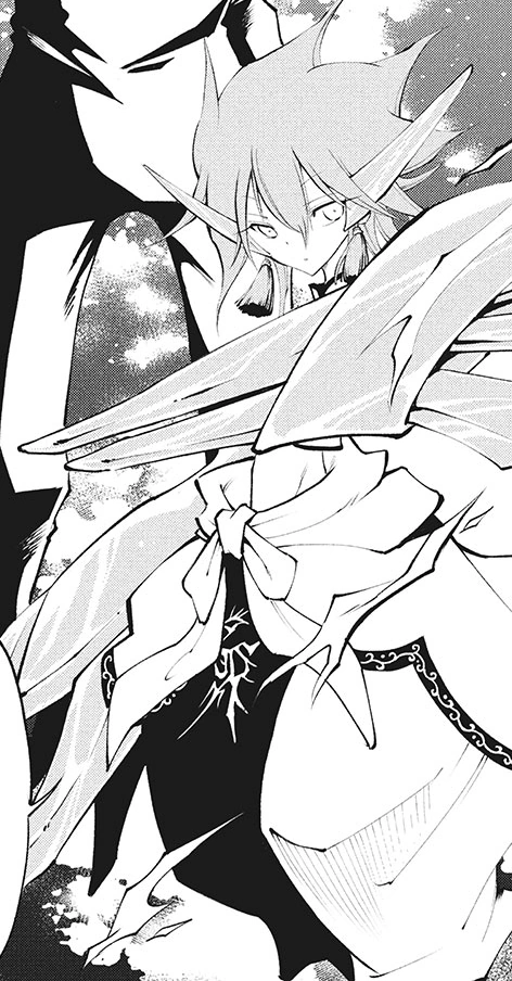 Ju-Che is one of the Four Holy Beasts, a group of Kami-class spirits belonging to the Dong Family.[1] Dong Suhon created mechanical child-like bodies for the Four Holy Beasts,[2] and Dehon operates Ju-Che through a small bell with a carving that corresponds to the spirit's animal, a pheasant.[1] Unbeknownst to Dehon, Ju-Che's spirit is actually sealed within himself, not the robot.[3]