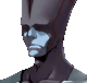 He had pale blue skin and he wears black clothes with a black cap.